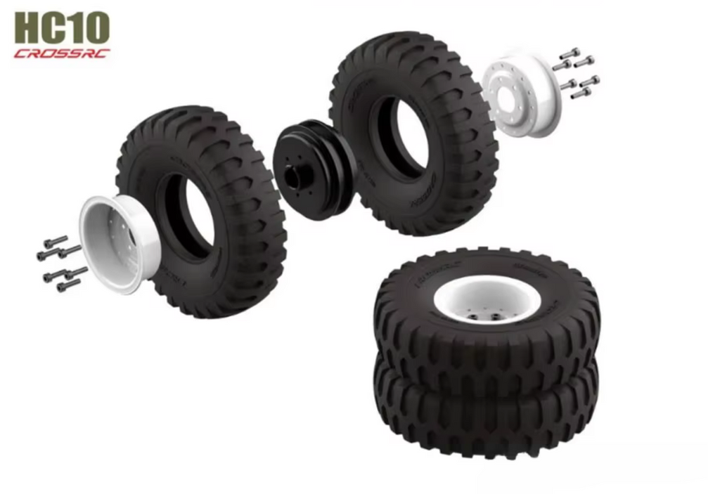 The rear axle wheelset consists of two CNC-machined wheels mounted side-by-side to form a "rear dual tire" with vintage, low-pressure off-road tires. This gives the HC10 a vintage look without compromising its off-road capability.