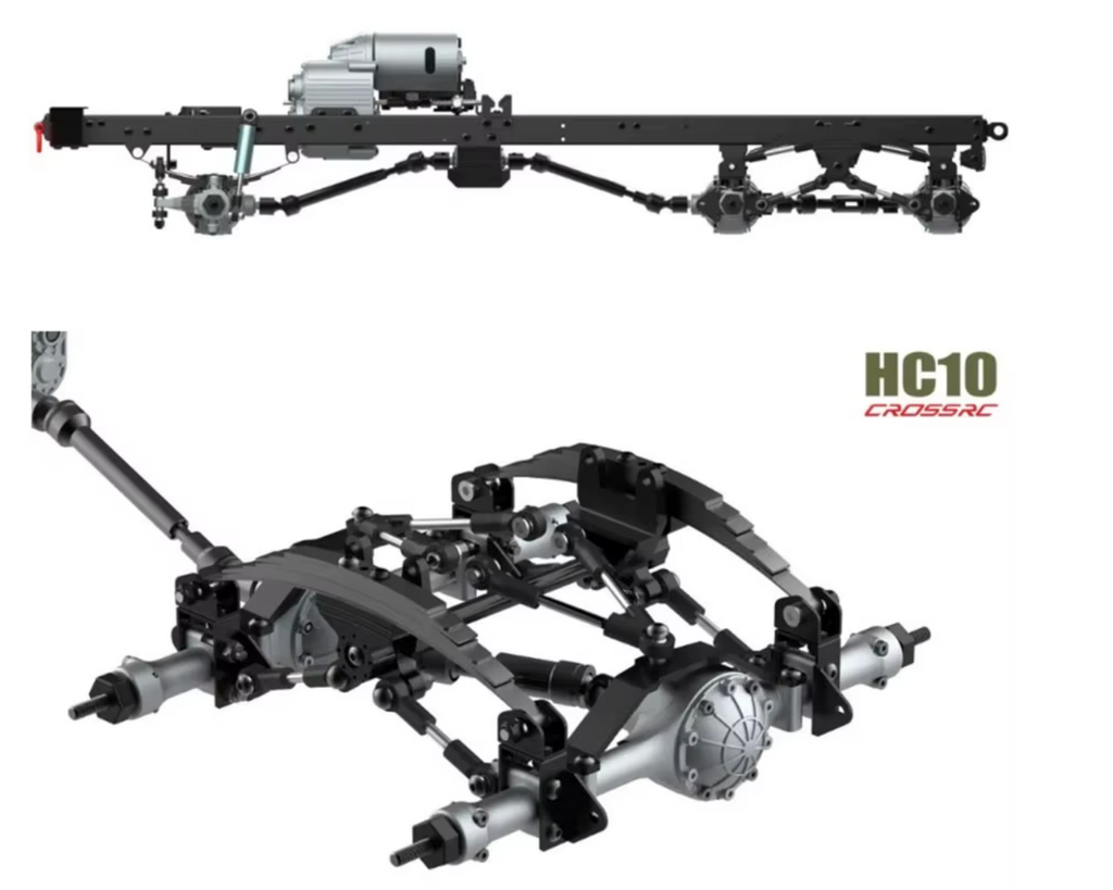 The HC10 adopts the real car's trapezoidal beam structure. The beam is made of 2mm high-quality aluminum alloy that has been processed and formed. The front bar is made of steel that has been stamped. The entire structure is lightweight and strong.