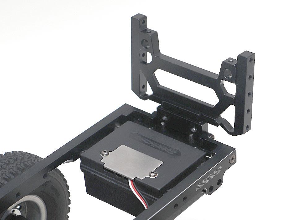 To use the BRX01 rear body hinge system with the Universal body mount set (#BRLC7070), use this optional Rear Quick Release Hinge Mount.