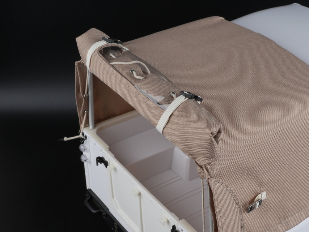 Designed for Land Rover Series 88, this KUDU 3/4 Canvas Soft Top Set allows you to convert your vehicle into a fabric-top truck, maintaining an accurate scale look with a precise fit.Under the canvas is a 3/4 aluminum hoop set that includes the front/center/rear hood sticks and horizontal tie bars.The canvas can roll up in the back with straps on the top to lock in place.Photos are for reference only, the body is separate and not included.