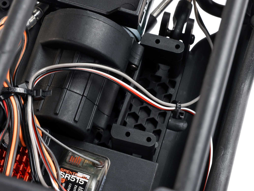 The included Spektrum DX3 radio and Firma 70A ESC give you the telemetry benefits of exclusive Smart technology. Other high-quality, factory-installed Spektrum on-board electronics include a SR515 5-channel DSMR receiver, S682 metal gear steering servo, and SX117AX metal gear micro servo for the ASD function. Just add your choice of recommended battery and charger - then you’re ready to take on any obstacle that lies ahead.