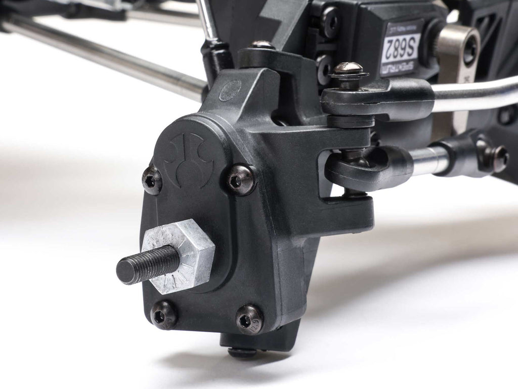 Axial puts the emphasis on durability and versatility with its all-new AT6 transmission. The transmission includes a 30% underdrive to the rear axle that dramatically improves climbing and increases maneuverability. It’s also designed to accept optional ASD (Axial Selectable Drive) setups for an unprecedented level of vehicle control.