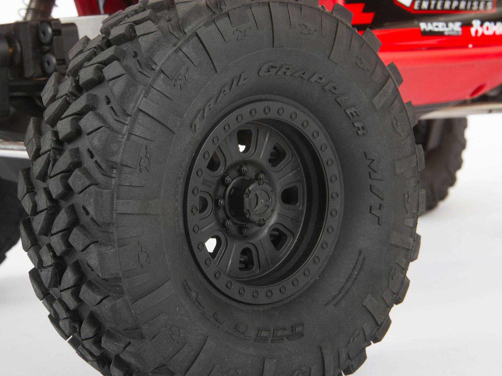 - Nitto Trail Grappler 1.9 tyres are mounted on injection-moulded, 3-piece, licensed Raceline beadlock wheels