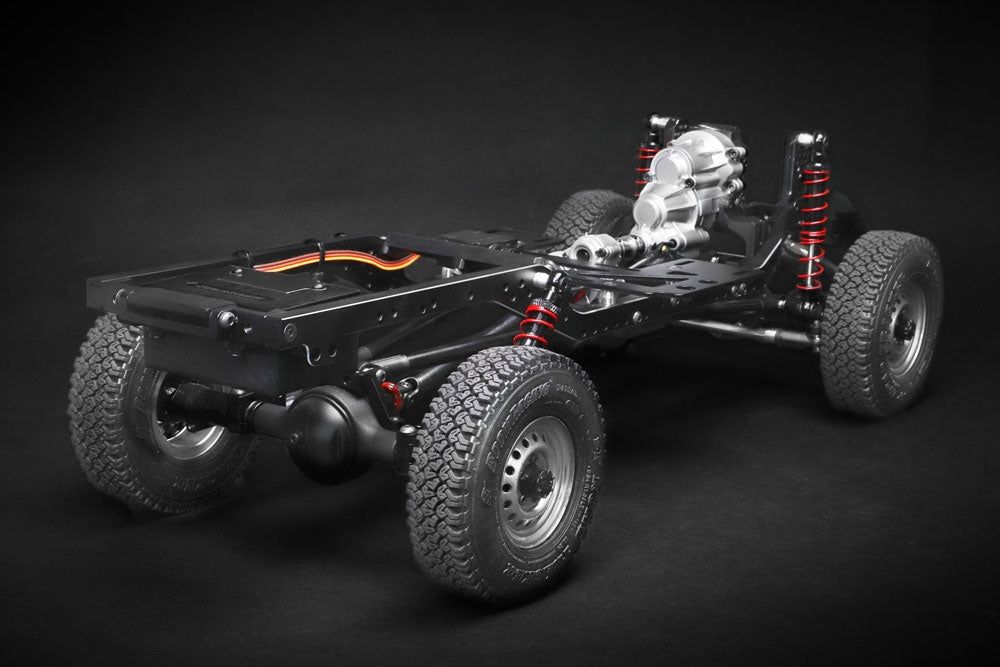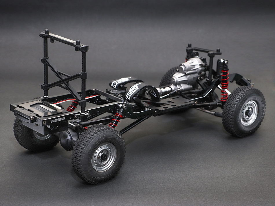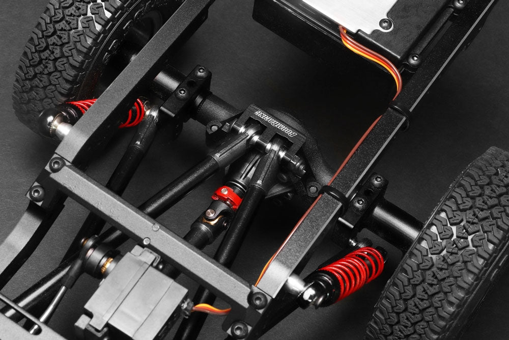 The BRX01 kit includes factory pre-built axles, transmission, transfer case and shocks. Shocks require oil to be filled (included).