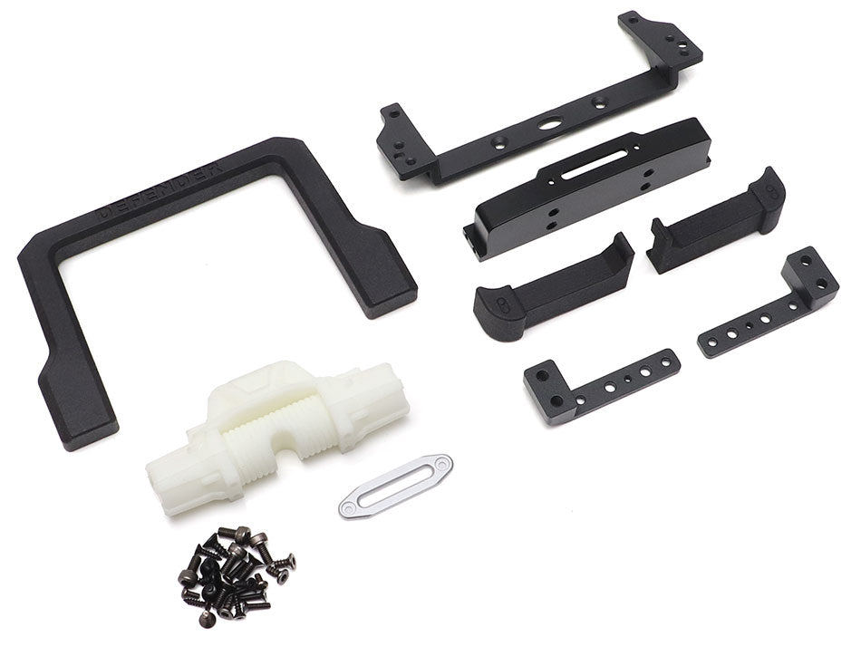 All three bumpers come with an aluminum fairlead for your working winch. The replica winch is finished in smooth ABS plastic, which can be easily painted for a beautiful finish (check the black color finish we did on the Spectre bumper). You can run an internal servo winch line through the replica winch for an amazing scale look.