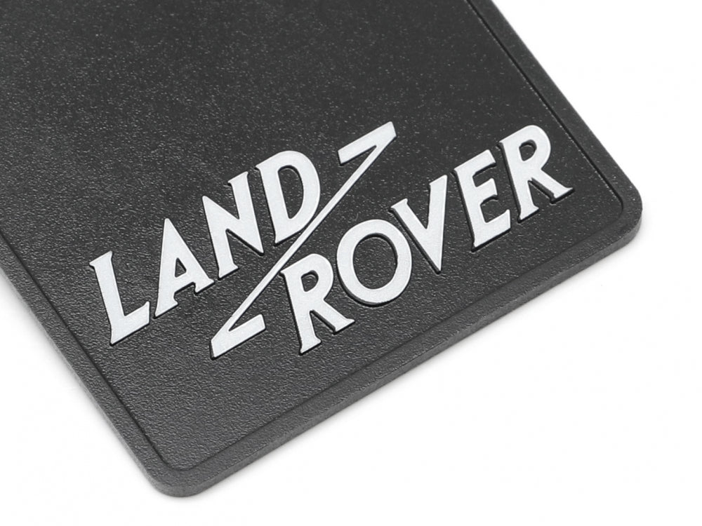 This is a pair of genuine classic rubber mud flaps for the Land Rover Series III. Two versions are available: plain black and with white Land Rover logo. Prevent mud, water, salt, and debris from spraying out. Includes hardware for installation. This is a genuine Land Rover approved product.
