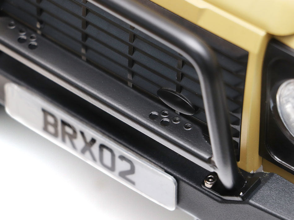 - This is a front steel nudge bar set for the BRX02 stock bumper.